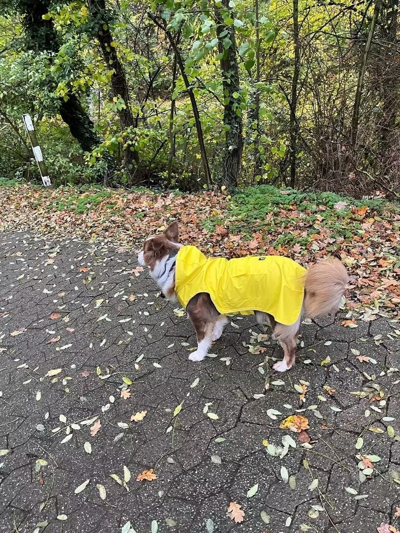 El RainPet está diseñado con poliéster recubierto en PU que repele el agua de forma efectiva, manteniendo a tu mascota seca incluso bajo lluvias intensas. A diferencia de otros chubasqueros, no se endurece ni se pega al pelo.